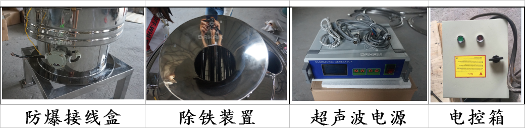 超聲波振動篩的衍生產品,是在DHC系列產品的基礎上在料口出增磁棒除鐵,從而達到除鐵的效果。